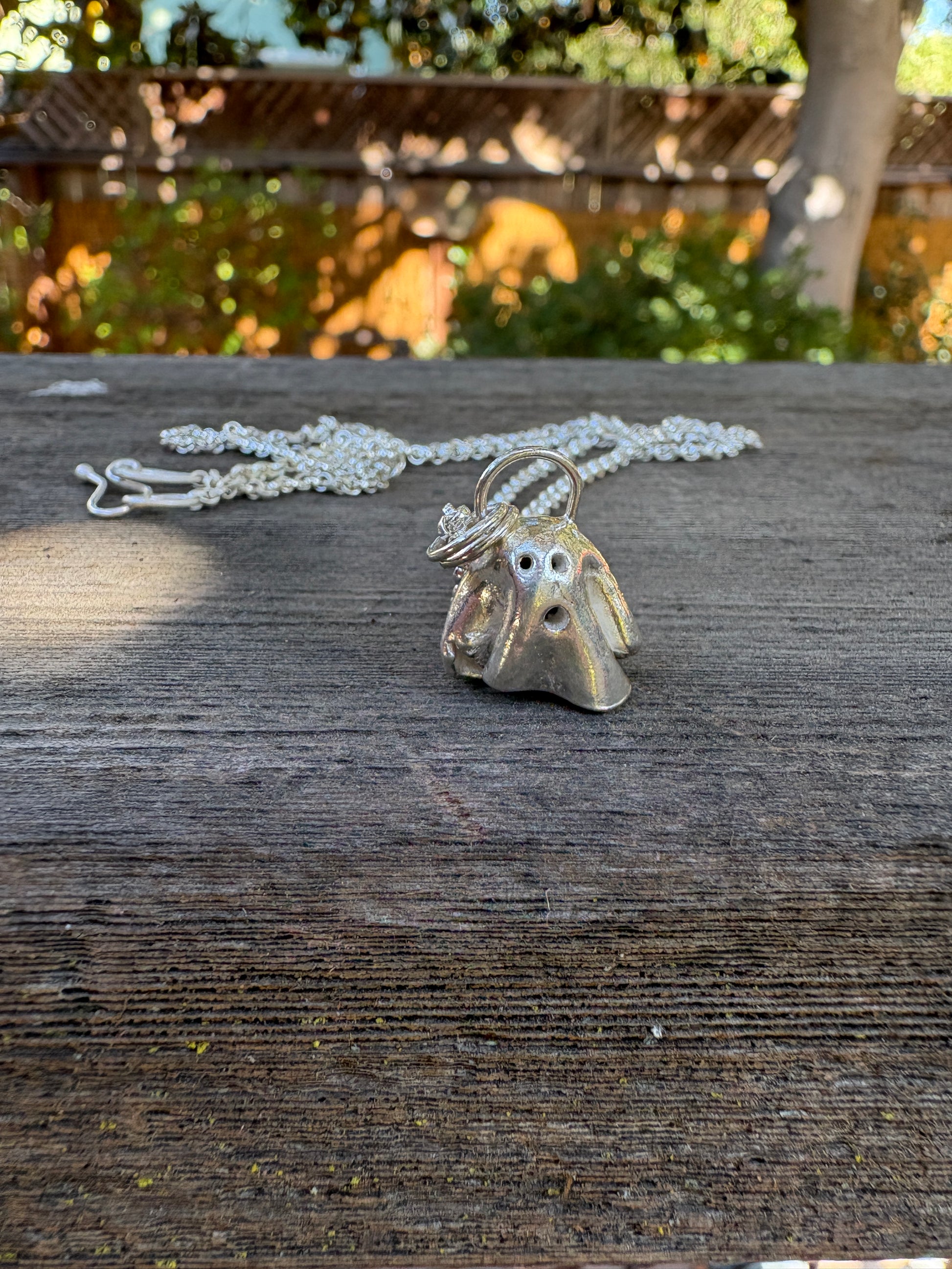 Sterling silver ghost friend to celebrate your Halloween! Comes with 22 in. sterling silver chain.